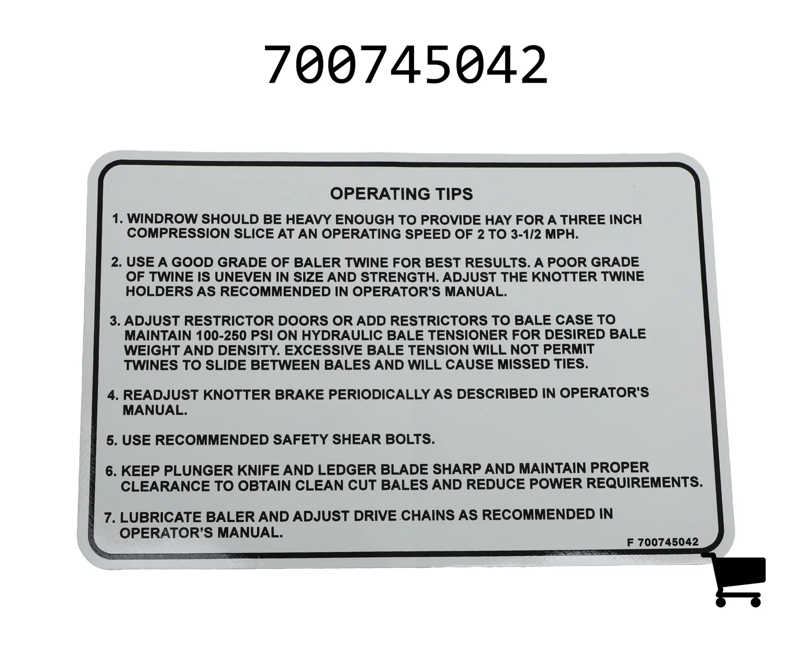 Наклейка с инструкцией AGCO