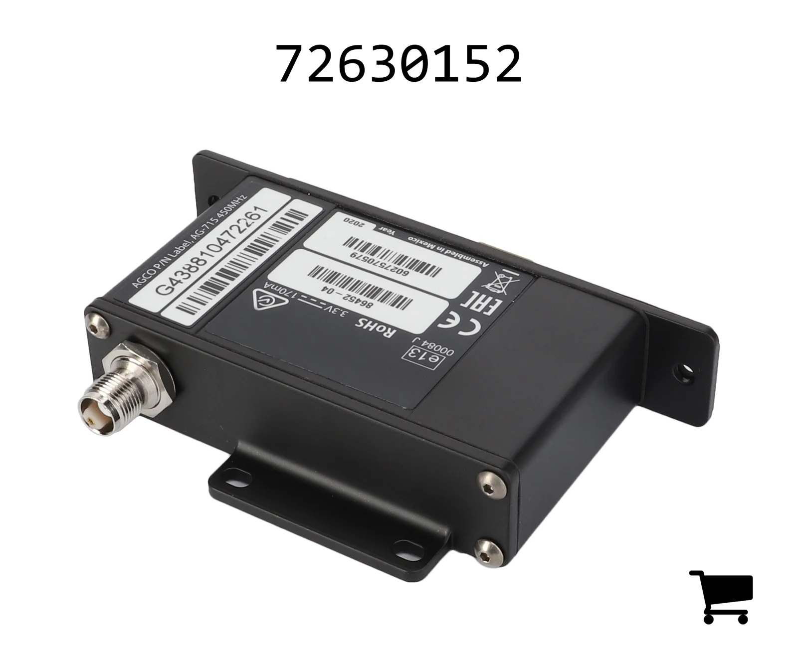 Этот модем устанавливается в навигационный приемник AG-382 для приема RTK-сигналов, обеспечивающих сантиметровую точность. См. каталог запчастей для получения информации о другом оборудовании и антеннах, необходимых для установки.