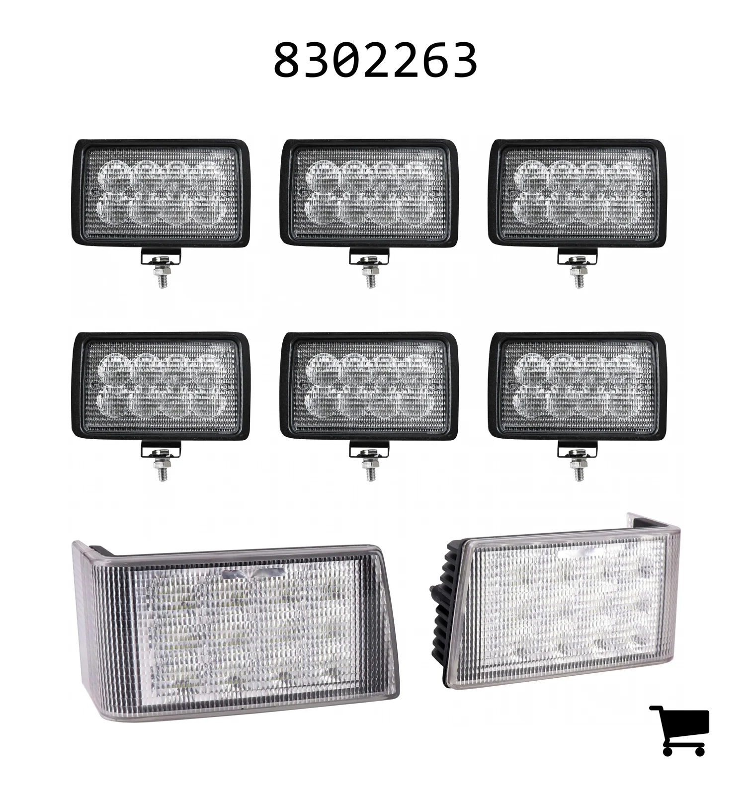 В комплект входят (1) комплект HA1964881, (1) комплект головных фар Hi-Lo и (3) комплекта фонарей кабины и крыла HA92270.