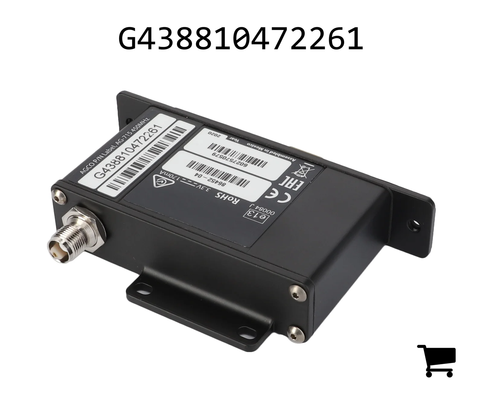 Этот модем устанавливается в навигационный приемник AG-382 для приема RTK-сигналов, обеспечивающих сантиметровую точность. См. каталог запчастей для получения информации о другом оборудовании и антеннах, необходимых для установки.